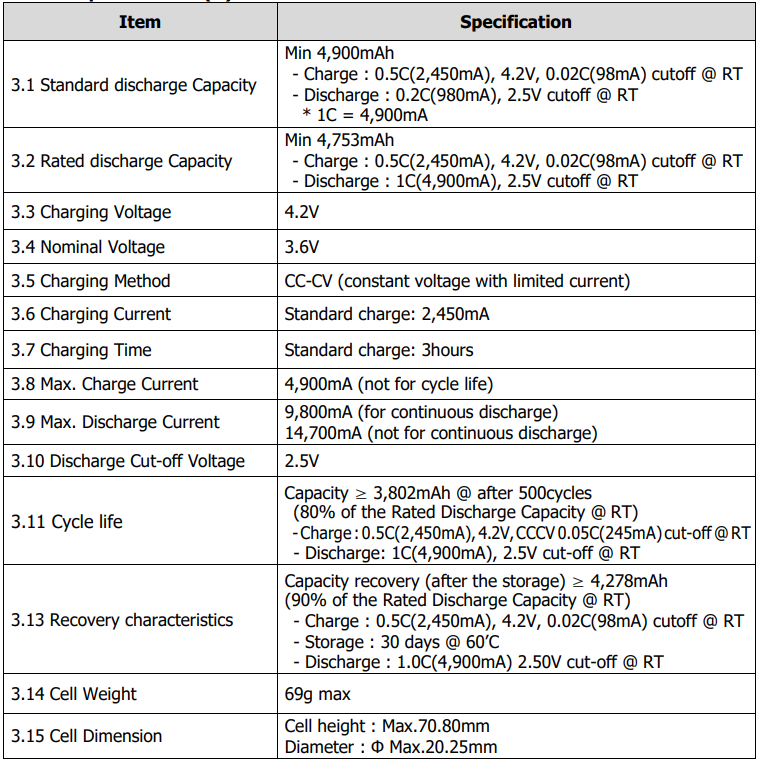 Specs are in the 2nd photo. These are very expensive elsewhere so this is your chance to get some one best 2170's on the market for a fraction of the cost that are testing like new.