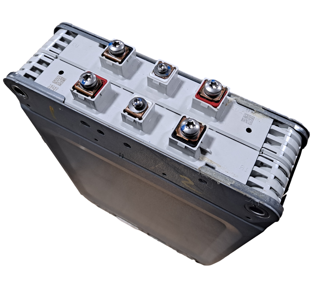 These batteries are just like the leaf batteries. This 1 battery has 2x modules compressed together. Each of the 2 modules have 2 cells in series. With this 1 complete battery you can make a 4s 15v 42ah 630wh. Bolts are included. You will have to add your own busbars.