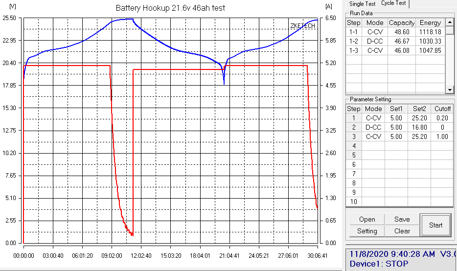 The 4th photo shows the actual test conducted on this module. These use 2550mah cells and they tested 2.2% above that so this module is testing like new and came out of an overstock portable power supply. Dates on the cells are 2018 dates. The BMS is an 80a rated for discharge bms and it also has a separate charge port but you can charge through either port, you'll get overcharge protection when charging through the charge port. Charge rate is 40a max continuous. The BMS date is 6/22/2018. The date of the unit this came out of was 2019 on the box. 1.03kWh. 6s lithium ion. 25.2v fully charged. 16.8v fully discharged. As you can see with the discharge graph 98% of the power is stored above 20v so this would work great with a 24v inverter that has a 20v cutoff. Pack weight is 12 lbs.