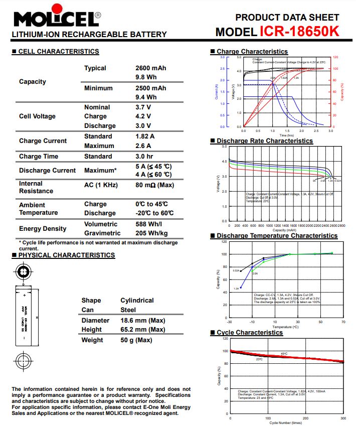 30 New Molicel ICR18650K 2600mah cells