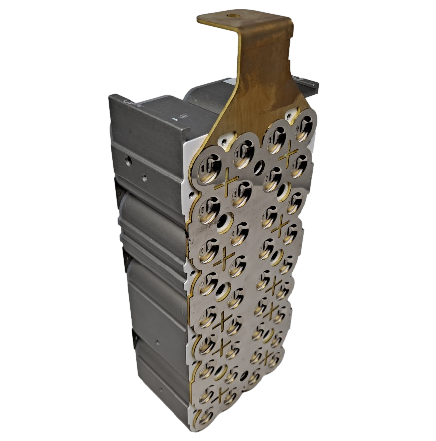 These cells have never been cycled. The spot welding machine messed up on one of the 4 modules in a pack and the whole pack was rejected so with these 3 modules you get 36 never cycled cells with a properly spot welded busbar. You also get a nice cast aluminum cell holder to sweeten the deal.