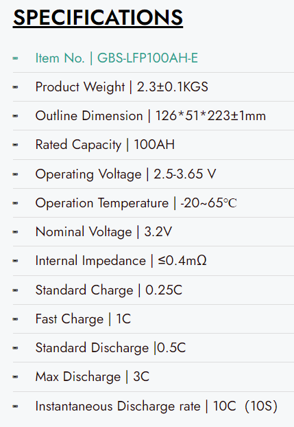 4 Pack GBS 3.2v 100ah Lifepo4 Cells