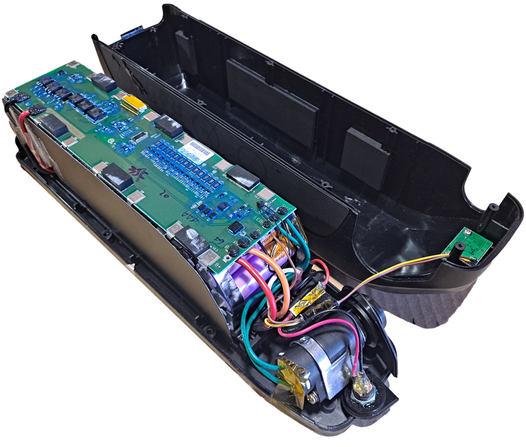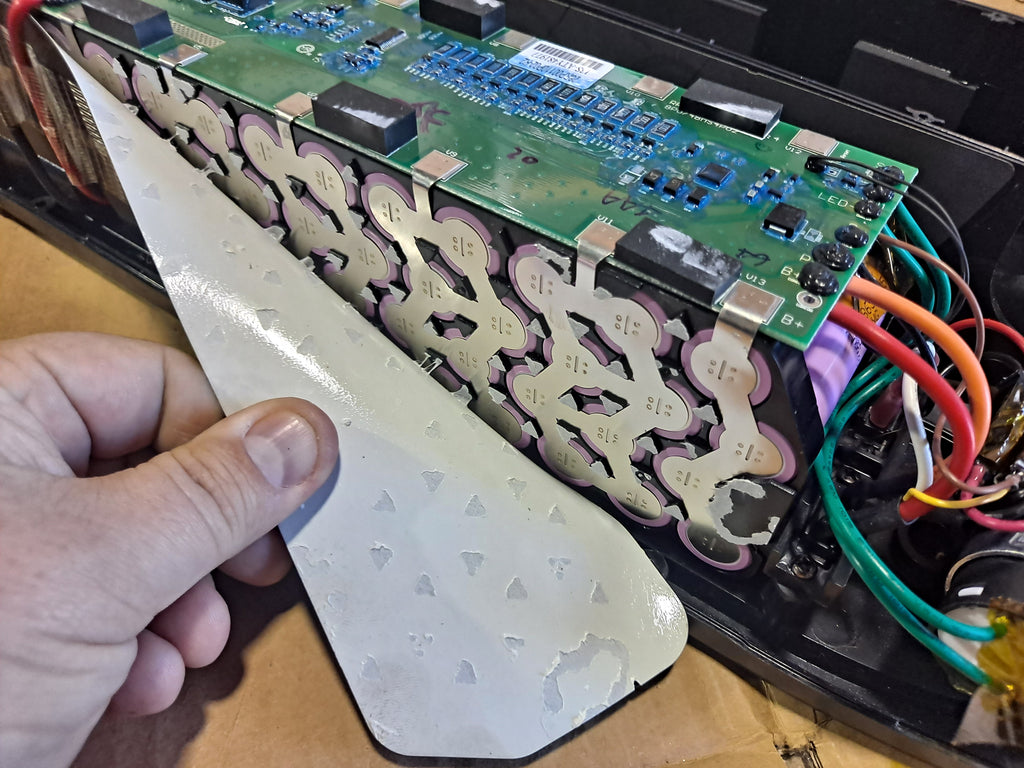 Each battery is 48v 14ah 672wh and consists of 56x Samsung INR18650-35E cells in 14s4p configuration.