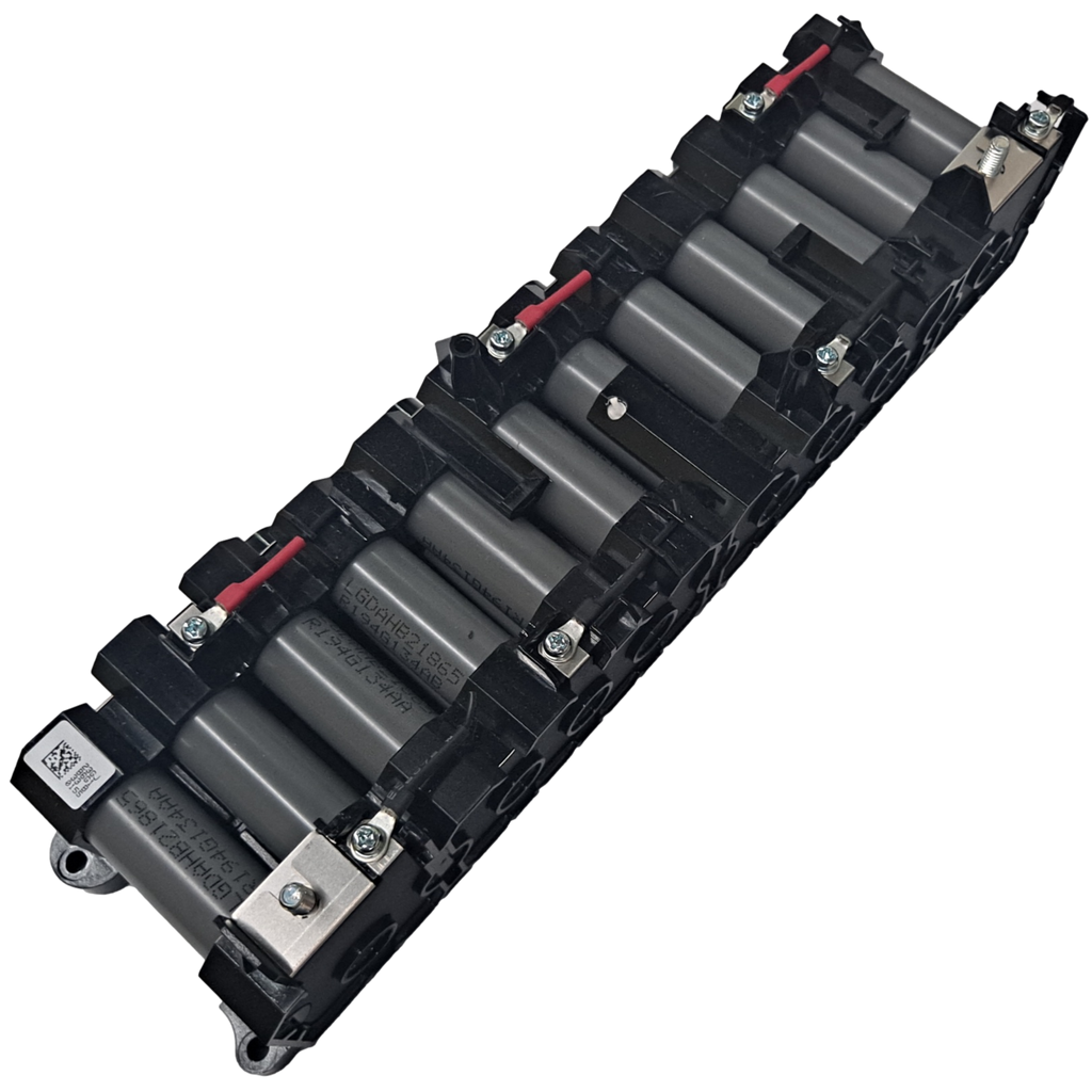 These modules were used as backup only. They have 24 HB2 18650 cells which are one of the highest C rate power cells ever made in 18650 form. Each cell can handle up to 30a continuous. These modules are built like tanks. You can easily add small ring terminals to your BMS balance wires and make the connections with the included bolts as you can see in the photos.