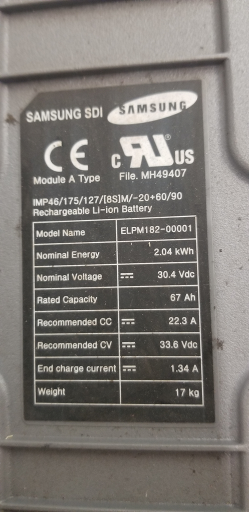 These Samsung modules are absolutely beautiful and in the original boxes. You can easily add an 8s Lithium Ion BMS since the balance leads are already connected, simply connect the balance leads to your BMS. The modules are also under 50 lbs (37 lbs) so they can ship ground instead of freight which is a huge bonus. They are 8s lithium ion with a 3.8 nominal voltage per cell and 67ah so these are similar to the cells that BMW uses in their vehicles. You can expect high cycle life out of the cells since they are EV grade cells. Each cell fully charged voltage is 4.2v and fully discharged is 2.8v. The cells are in 8s configuration.