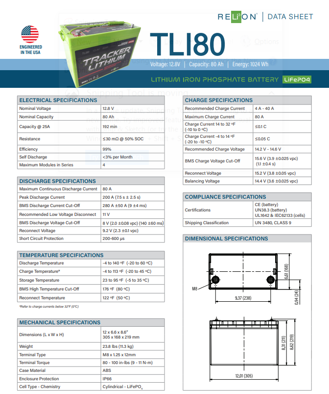 Bad Post - Tracker Lithium TLi80 Lifepo4 12.8v 80ah - Tested
