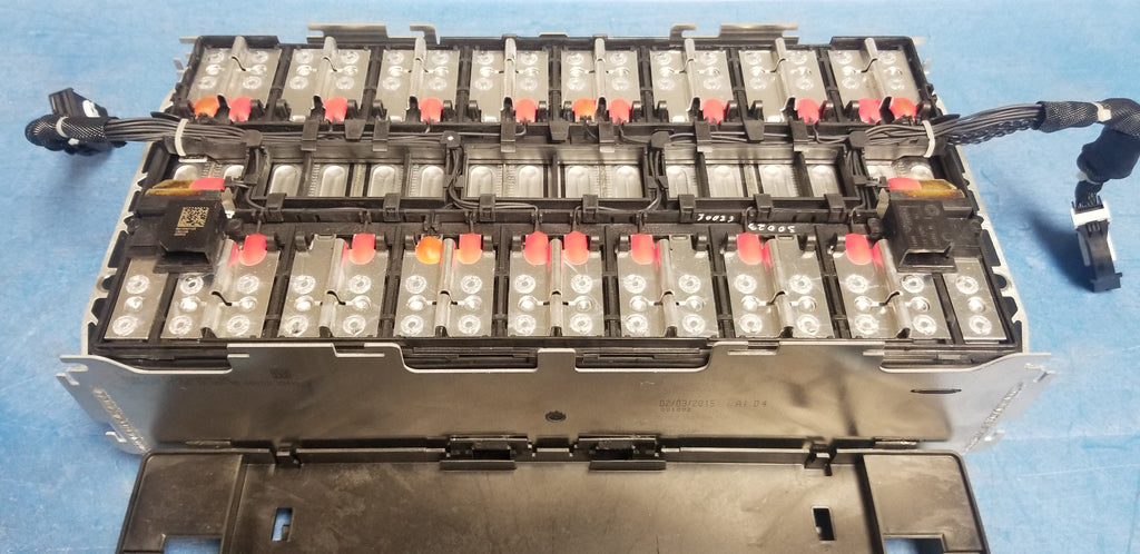 Here are awesome BMW batteries at Kia prices! These modules came out low mileage vehicles and they use 16x 35ah cells in series. This module in particular has a 1 bad cell and 2 of the busbars are sort of "cloudy" looking. Likely from the 1 bad cell venting and corroding the 2 busbars. What I would do is salvage these cells or bypass the 2 bad cells and make a 14s 48v battery out of them. These use 35ah Samsung lithium ion cells.