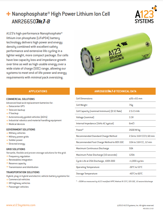 These are a great, cheap source for 26650 LifePo4 A123 cells. These are the newer versions of these packs, not the older versions that are more degraded. They have the newer m1b cells inside instead of the older m1a cells. The packs are used, balanced, and in 36v 12s8p configuration. They are built solid, used for city bus applications. The modules are roughly 80% of original capacity but still plenty of useful life in them and priced accordingly. Built for serious power. You will need to add your own BMS, the BMS on here would be great for salvaging gold. Adding a BMS would be super easy because you can add ring terminals to your balance leads and screw them down to the balance nickel sheet like the original BMS is set up. The original BMS is used to communicate to a main system to trigger on and off so the included BMS does not function like a BMS for DIY use.
