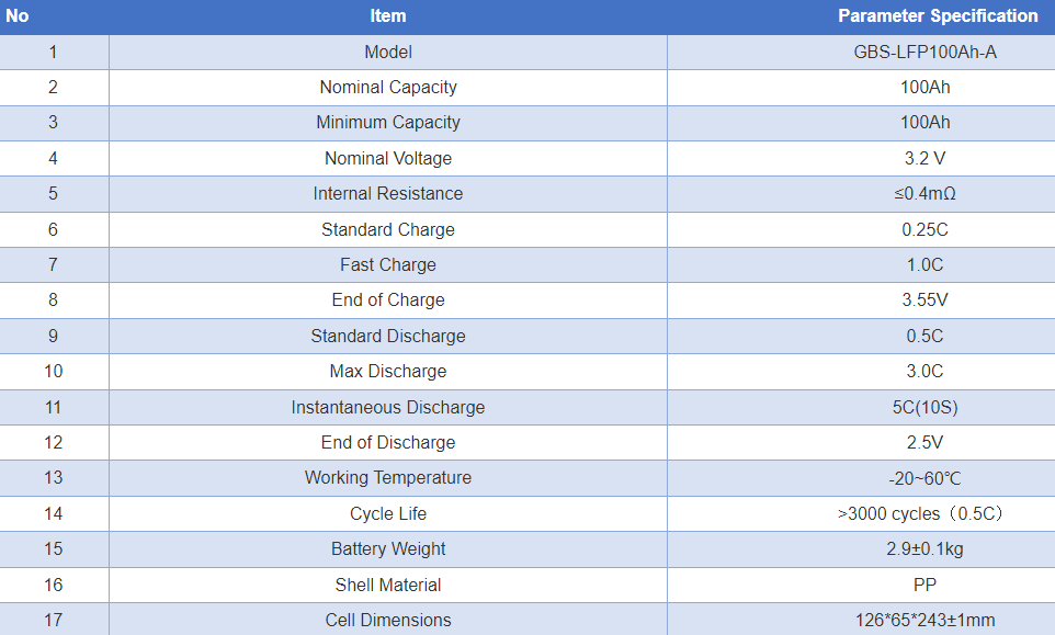 GBS 3.2v 100ah Lifepo4 Prismatic Cell - Square Post