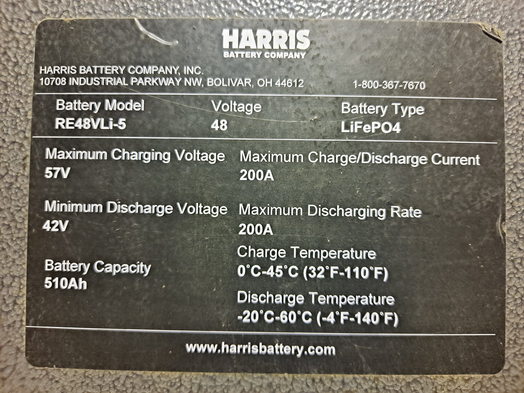 Harris 16s Lifepo4 51.2v 510ah 26.1kWh Battery