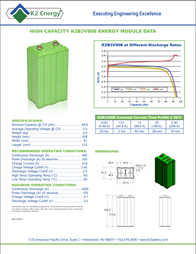 K2 3.2v 90ah K2B3V90EG Lifepo4 Power module