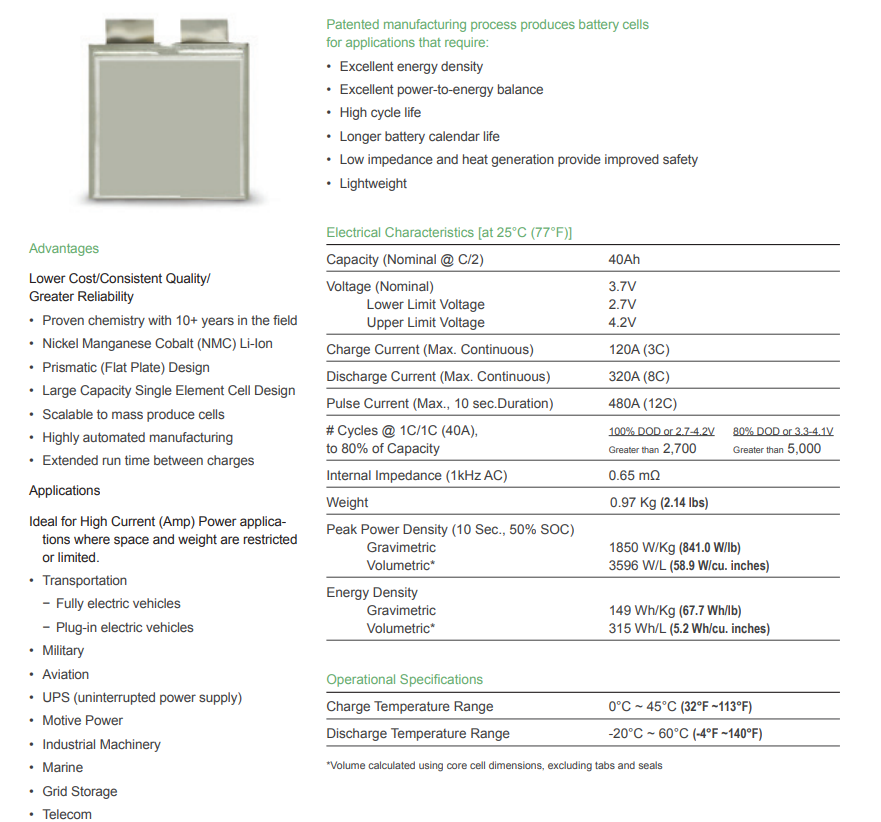 Kokam Xalt 40HP 3.7v 40ah Power Cells
