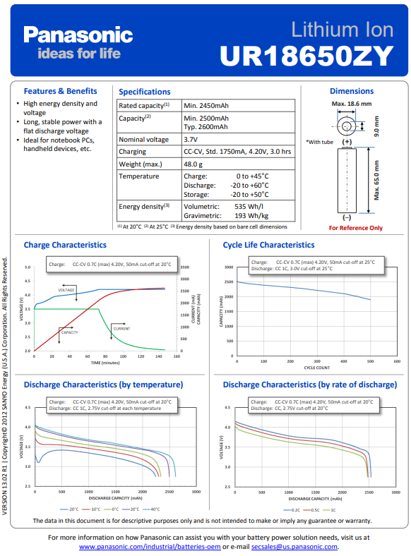 Here are amazing modem battery modules to easily salvage 2x Sanyo 2600mah 18650 cells from. The cells are the excellent UR18650ZY cells manufactured by Panasonic that are perfect for many applications. Since these were used as backup only in modems these cells have only been cycled a few times and possibly never cycled.