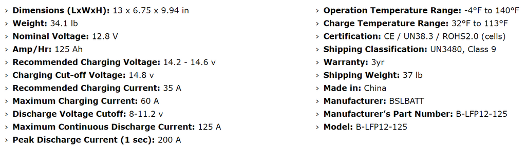 12.8v 125ah 1.6kWh Lifepo4 Battery with BMS - 12v