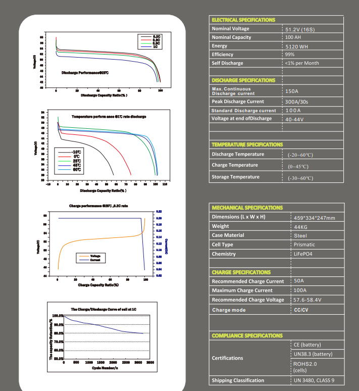 New 51.2v 100ah 5.12kWh Lifepo4 Battery with BMS - 48v