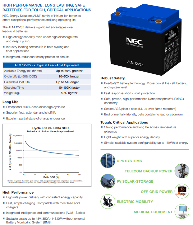 Parts NEC 12v35i HP CAN bus Lifepo4 - Power 210a BMS