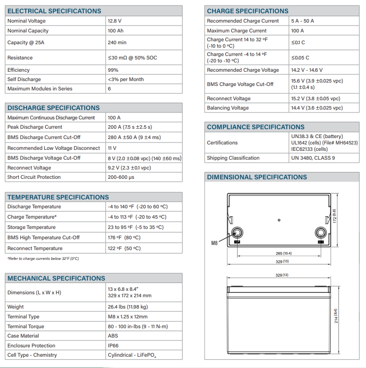 This battery in particular just did not take a charge. Either the BMS or 1 group of cells is bad. Either way the value is here and you will get a lot of value out of this. You can dremel the lid open to get to the cells and the BMS. These batteries new are crazy expensive. We only have this one available at the moment. Spec are in the 2nd and 3rd photo.