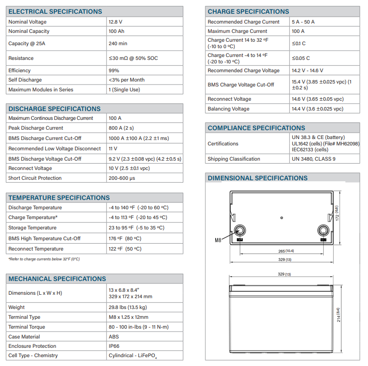 Parts/Repair Relion RB100-HP 12.8v 100ah Lifepo4 w/BMS High Performance