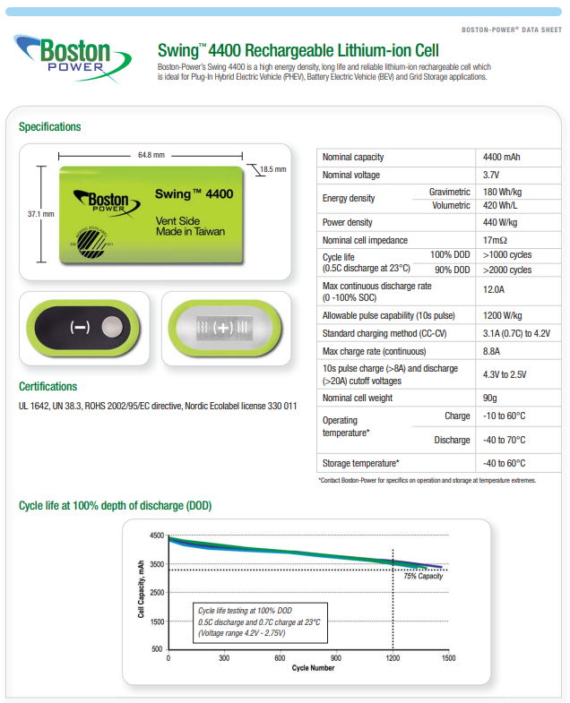 Unused Boston Power Swing 3.65v 4400mah 16wh