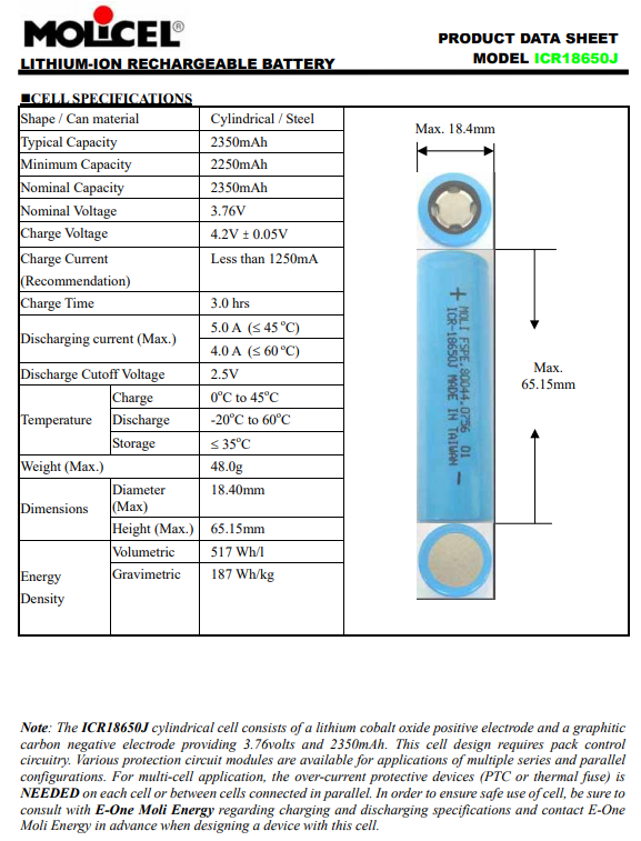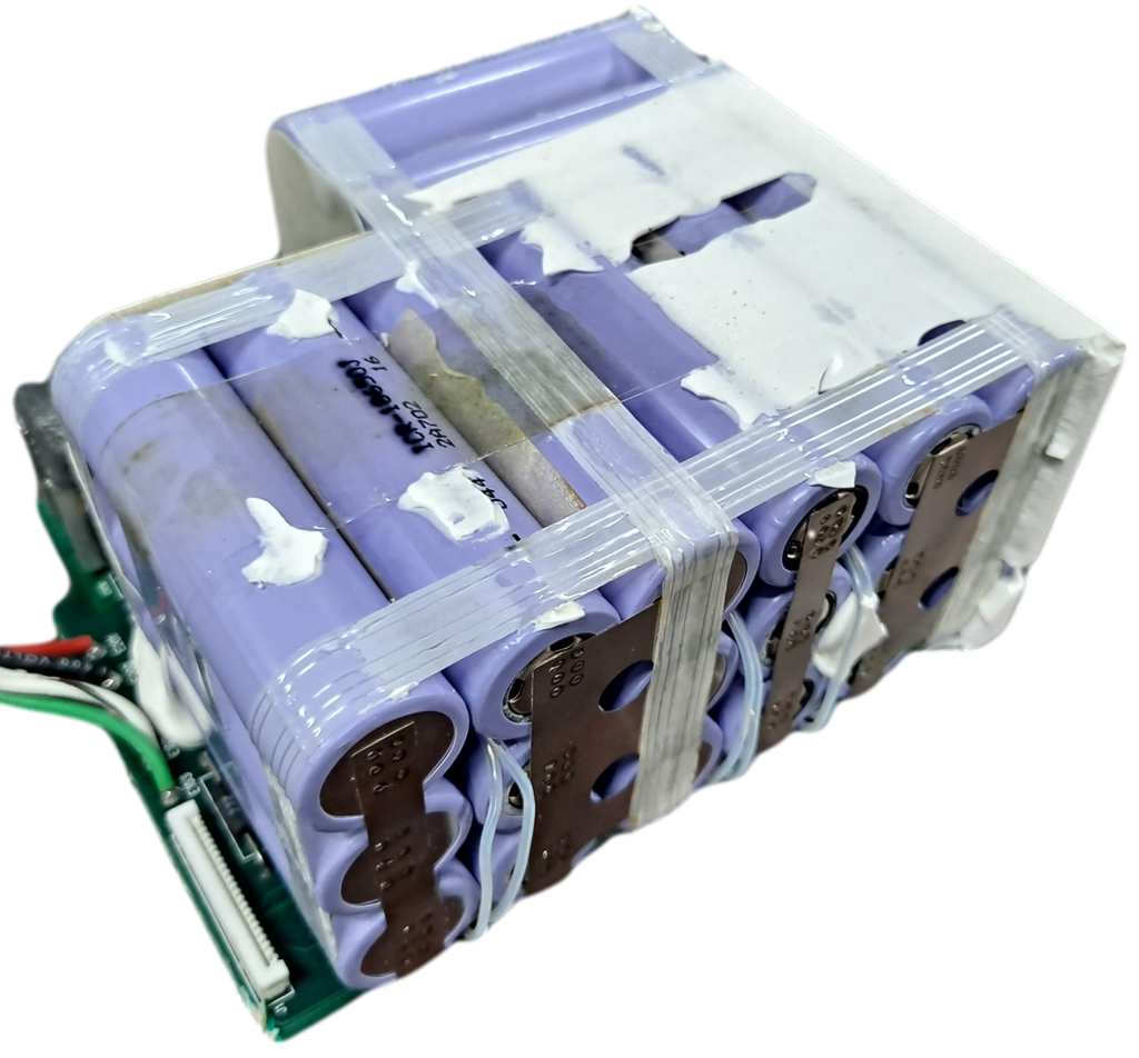 The battery has 24 Moli ICR-18650J 2350mah cells inside. The configuration is 2x packs of 4s3p. It is essentially 2 12v batteries in one. The BMS is proprietary so the value here is for salvaging the cells inside. 24 cells x 3.76v x 2.35ah = 212.06wh.