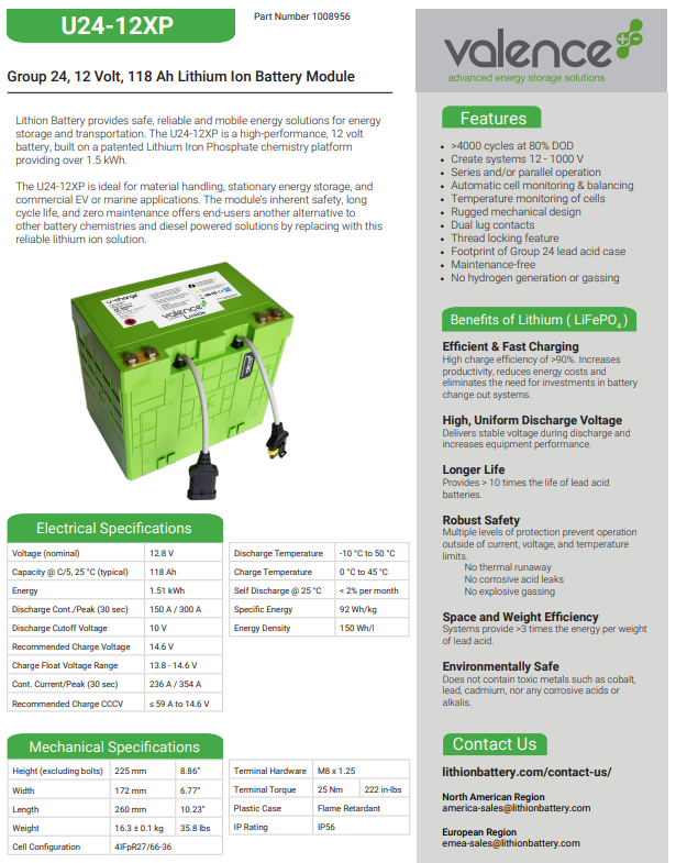 Valence 12.8v 110ah 1.41kWh U24-12XP