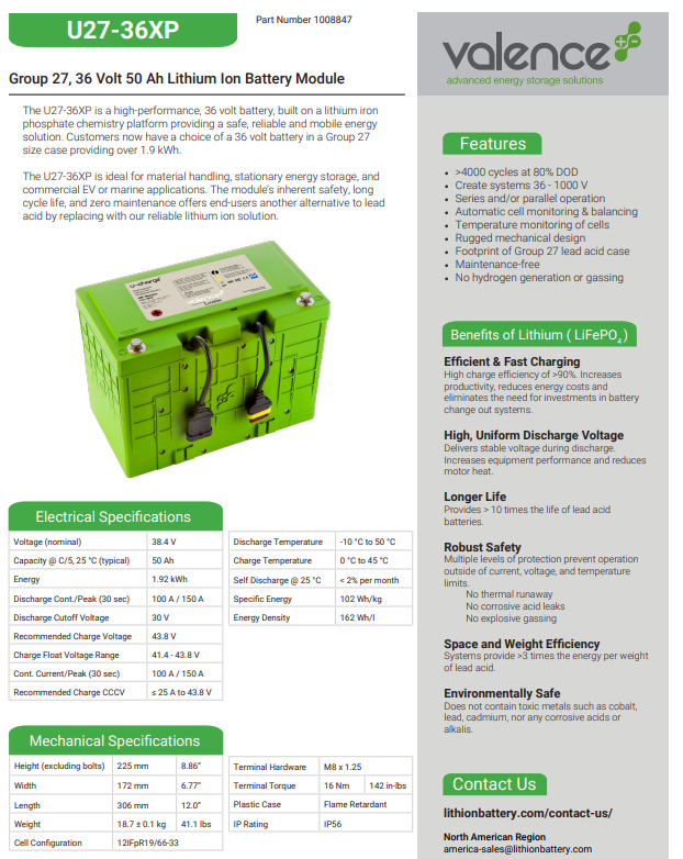 Valence (36v) 38.4v 50ah 1.92kWh U27-36XP