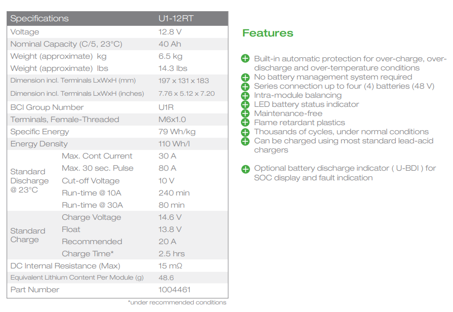 Valence U1-12RT LifePo4 24V 40Ah 1kWh Kit - A Grade